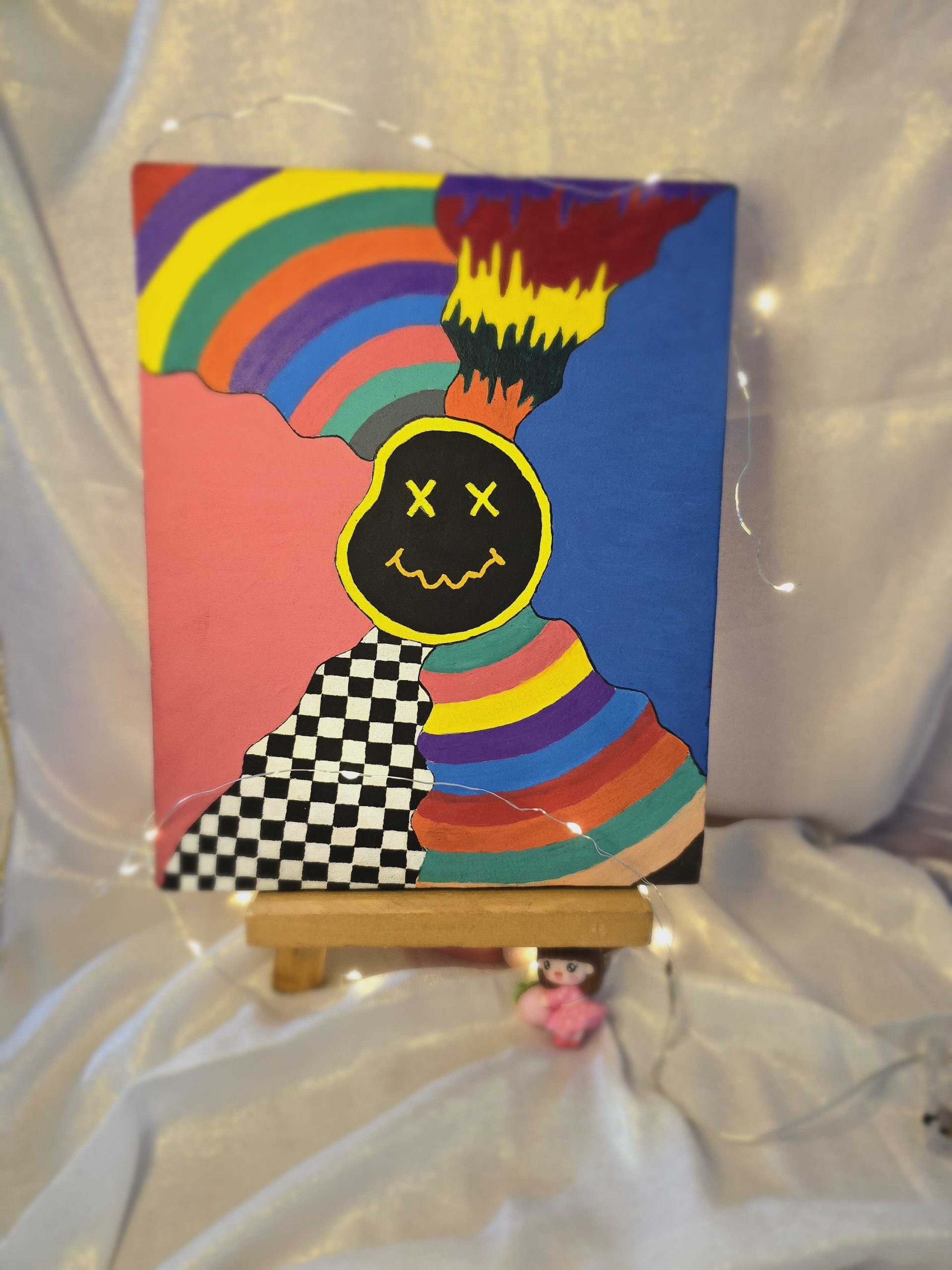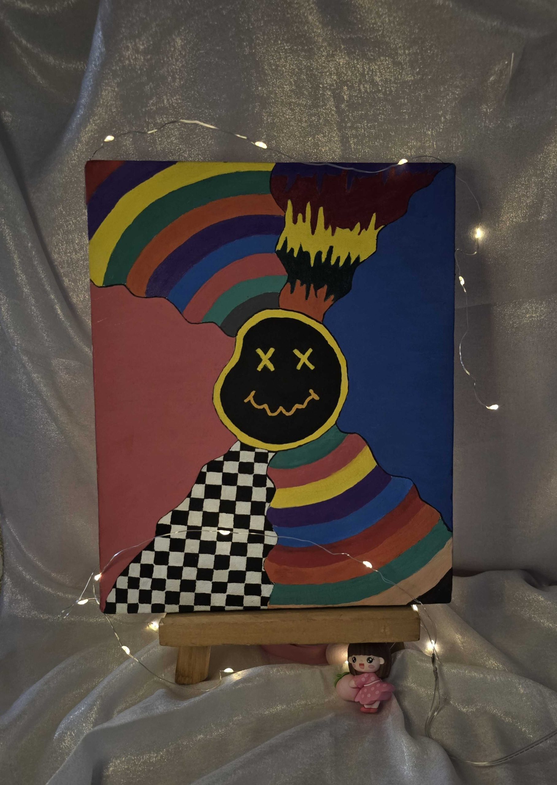 این تابلو نقاشی روی بوم رنگی و فانتزی، اثری شاد و جذاب است که با رنگ اکرلیک باکیفیت اجرا شده. مناسب برای دکور اتاق، میز کار یا هدیه‌ای خاص برای علاقه‌مندان به هنر و فضاهای خیال‌انگیز است.