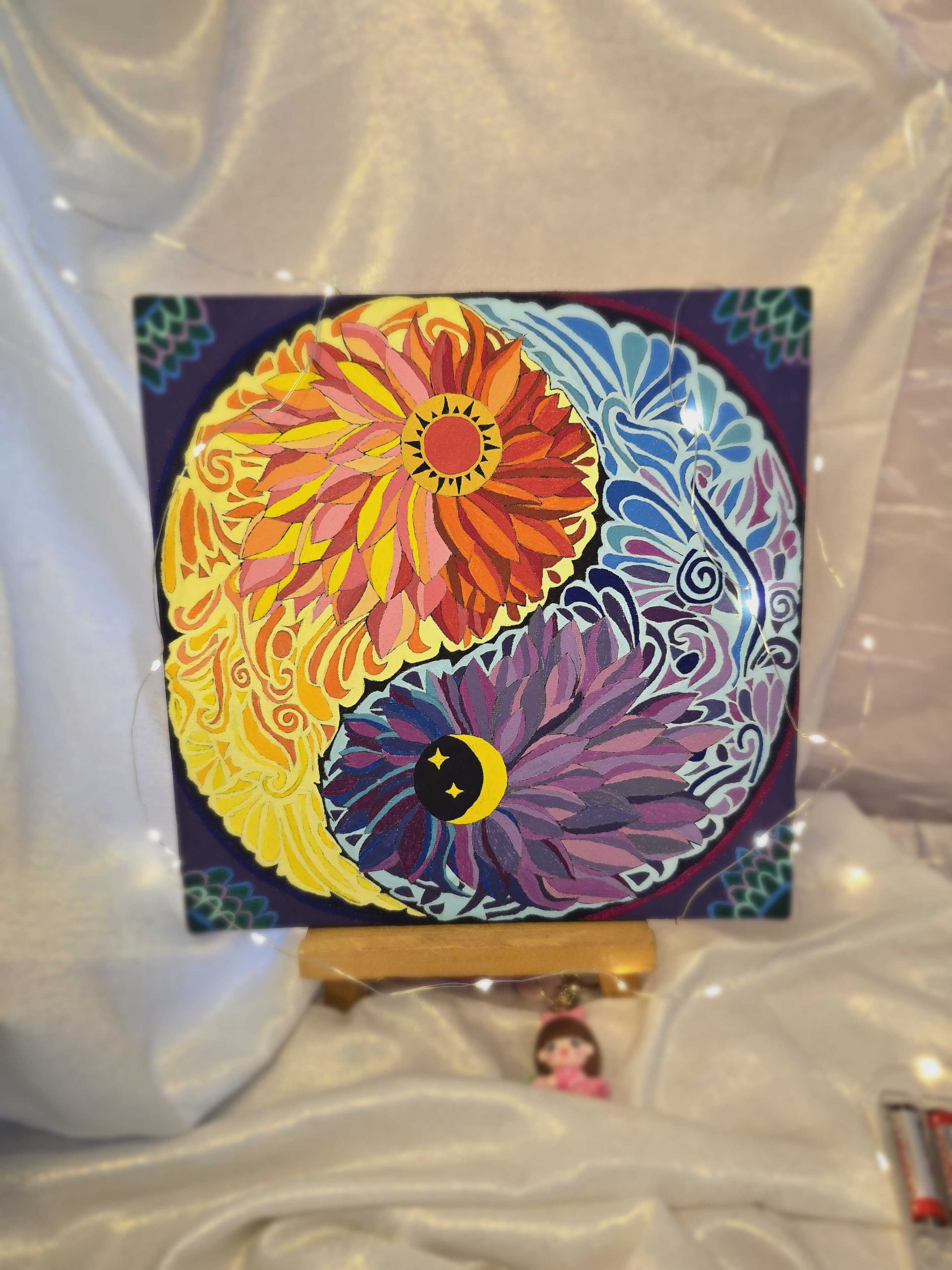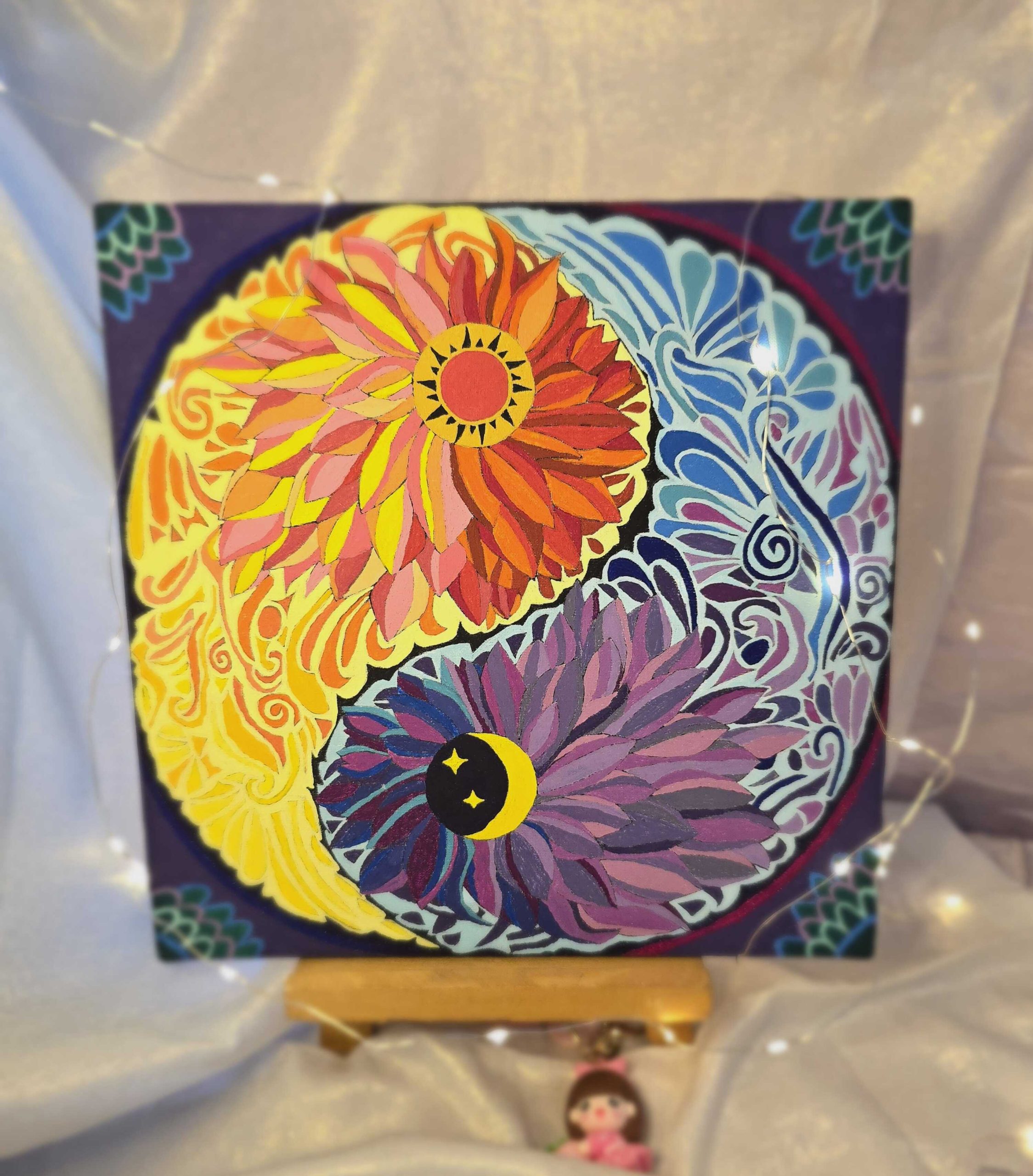 تابلو نقاشی روی بوم – یینیانگ ماه و خورشید رنگی