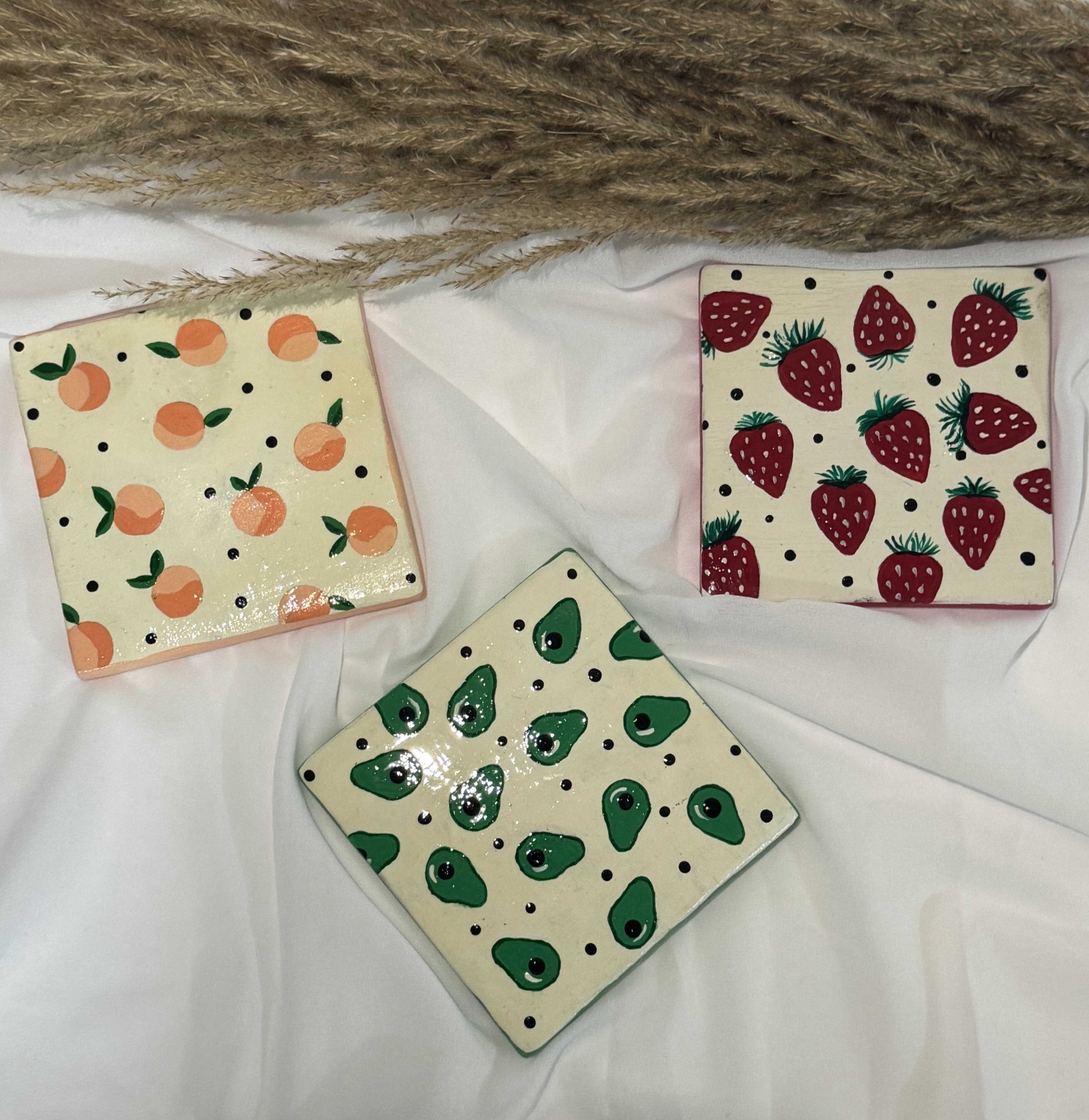 زیر لیوانی سرامیکی مربع طرح میوه_مناسب هدیه و استفاده در منزل