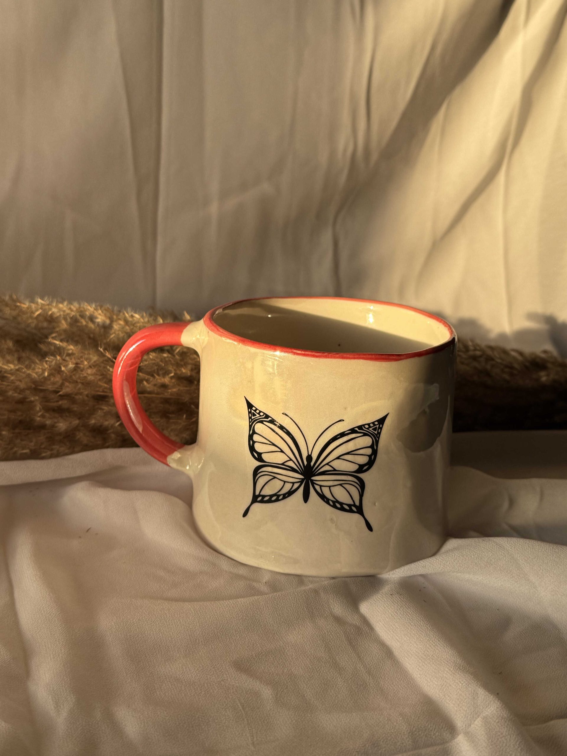 ماگ سرامیکی طرح پروانه قرمز-مناسب هدیه به عزیزان